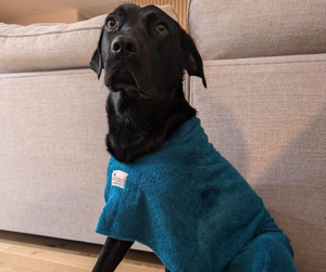 Thanks to their super-absorbent fabric and quick fit, Dogrobes are the easy way to dry your dog after outdoor adventures, swimming, grooming, training, working and bath times. The long loops on the inside of the drying coat quickly absorb moisture from your dog's fur, helping them dry off quickly in around 30 minutes.