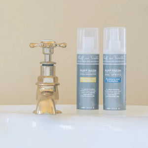 Ruff and Tumble worked closely with a leading and award winning UK manufacturer of dog shampoos to bring you a special formulation that will make cleaning your dog and removing whiffs a doddle, not a chore! With the essential oils of Rosemary and Eucalyptus, known for their ability to combat smells, this scented dog shampoo and essential oil spray work together for a cleaner, fresher dog.